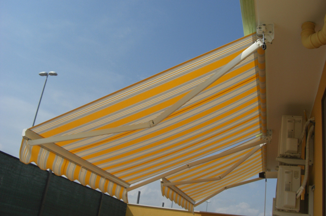 Tenda fornita con comando ad arganello, a richiesta puo´ essere motorizzata.